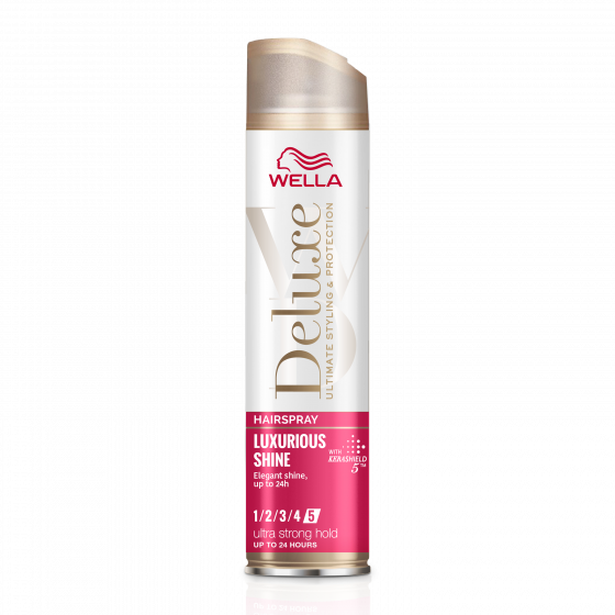 Wykończ włosy lakierem Wella Deluxe Luxurious Shine, aby nadać włosom lśniące wykończenie.