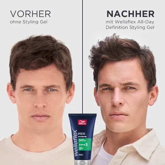 - Wellaflex Men All-Day Definition Gel, ein Haargel mit ultra starkem Halt