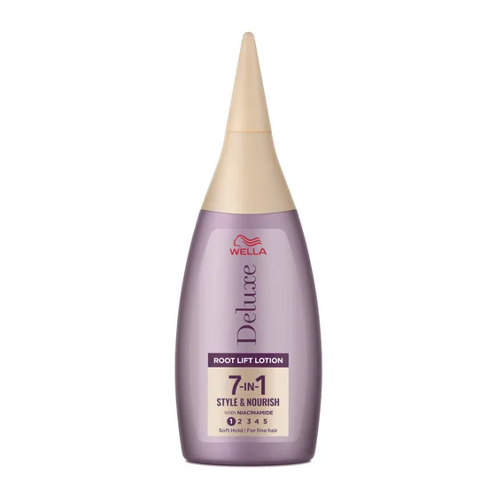 Wella Deluxe Root Lift Lotion provides fine hair with an instant volume boost, soothing the scalp and making the hair feel supple. The Niacinamide in the dermatologically tested formula helps boost the hair fiber for lightweight fuller looking hair, refreshing your hairstyle and setting you up for hair day that feels as good as it looks.