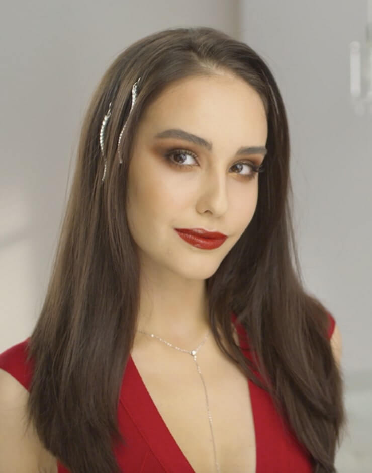Create two tiny braids to the side of the head. Keep a distance about 3-5 cm between them. Now hook your favourite earings into braids and secure with a firm hold hairspray to let the look lasts longer.