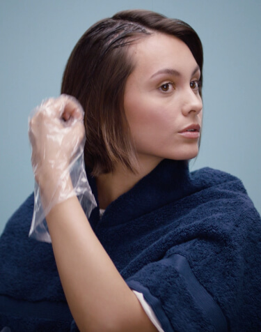 With gloves on, use fingertips to blend the color into the roots, ensuring you get full, flawless coverage. Even grays will be instantly disguised.