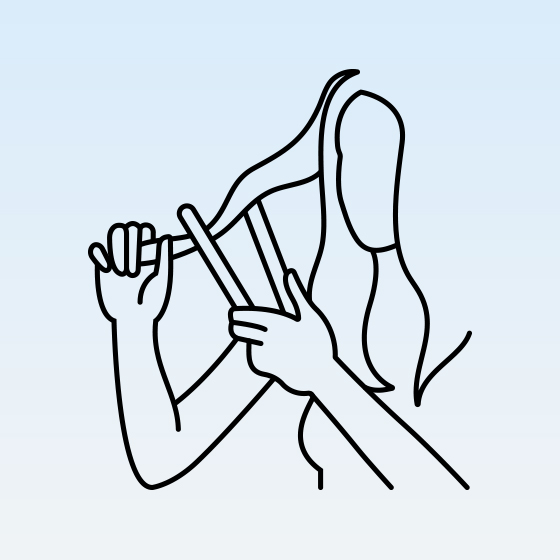 Separate blow dried hair into two sections. Take your ghd Gold Styler and place around a small piece of hair. Then, glide straighteners back and forth from root to tip, creating a soft ‘S’ shaped wave. Repeat for every section.