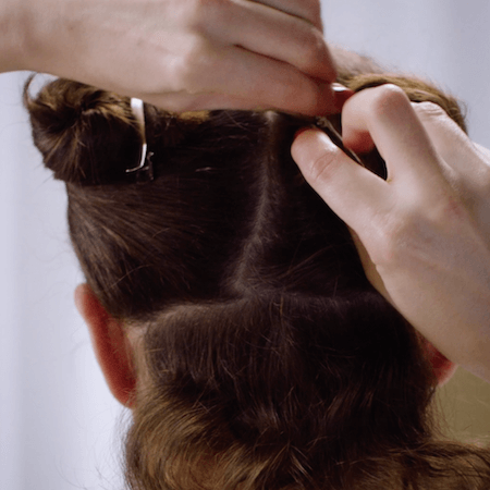 Next, take a section of hair and wrap the middle around a wide-barrelled tong, making sure to leave the ends of hair free. Repeat section by section to create a soft wave.