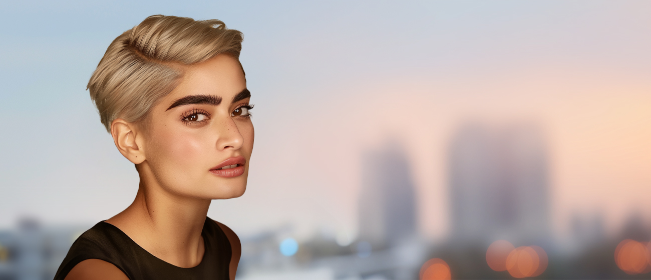Achieve an elegant swept-back blow dry look that’s perfect for pixie hair with these hair-perfecting products: