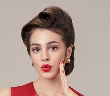 To keep hair shiny, finish using Wellaflex Power Hold Hairspray. Enjoy your pin-up look!