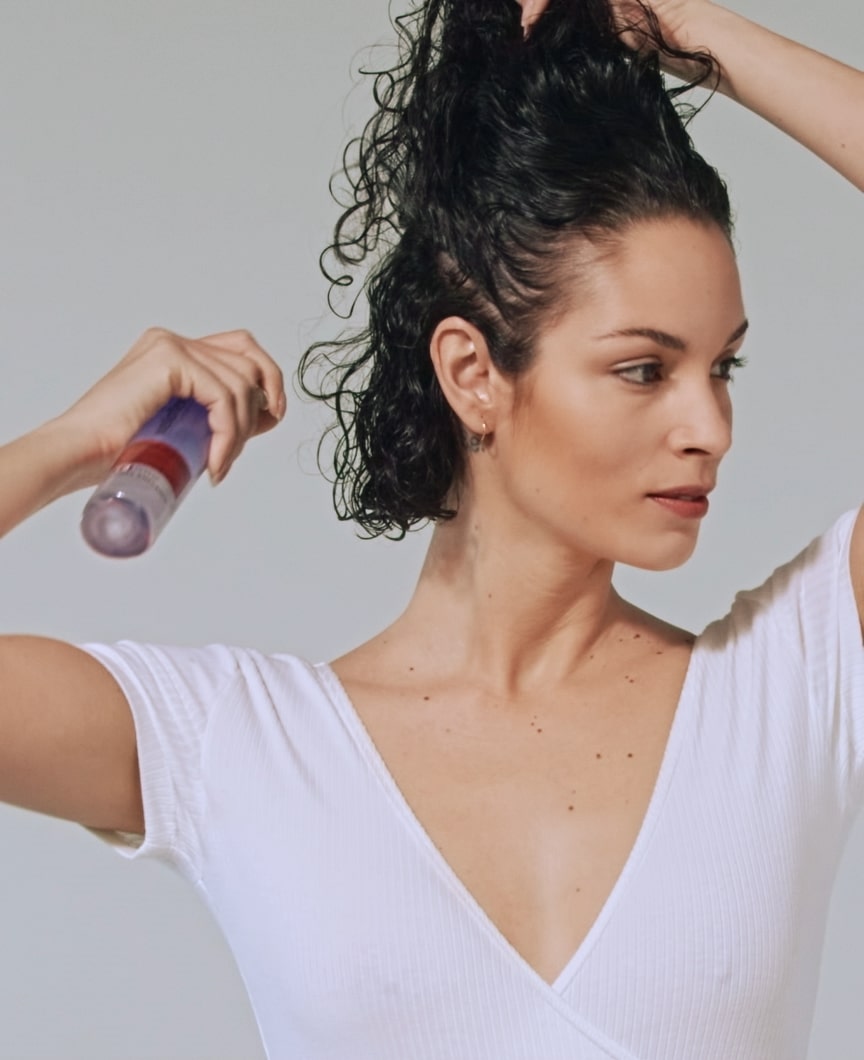 Wet your hair down and use Wellaflex Heat Protection Styling Spray along the entire length, from root to tip.
