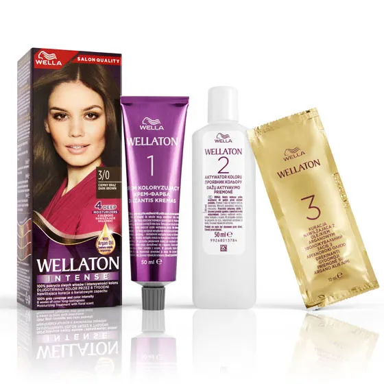 Farba do włosów Wellaton Intense zapewnia całkowite pokrycie siwych włosów i wzmacnia pielęgnację. To 100% intensywny kolor na zewnątrz i zdrowe i mocne włosy od wewnątrz. Głęboko odzywiająca kuracja zamyka łuski włosa, zapewniając optymalny połysk i miękkość. Kuracja nawilżająca, o atrakcyjnym, kwiatowym zapachu - bogate białe kwiaty na drzewnym tle, tworzy gładką powierzchnię dla dodatkowego połysku i nawilża włosy do 6 tygodni. Ciesz się satysfakcjonującym kolorem i perfekcyjną pielęgnacją już teraz!