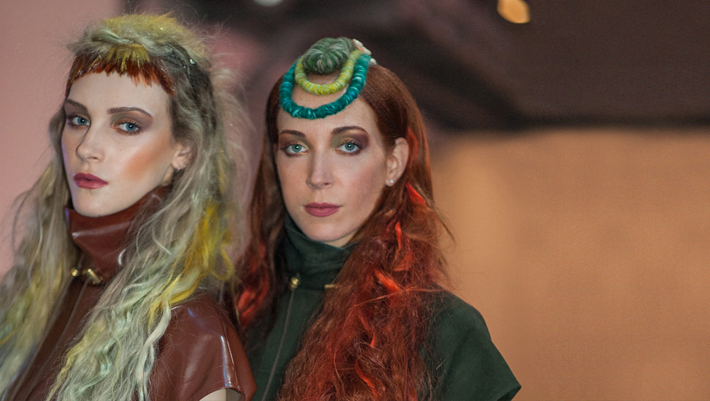 This head turning burnt copper look is inspired by the elements of fire and earth. The marbled color offsets the raw weathered texture in the long hair and underlines her daring personality.