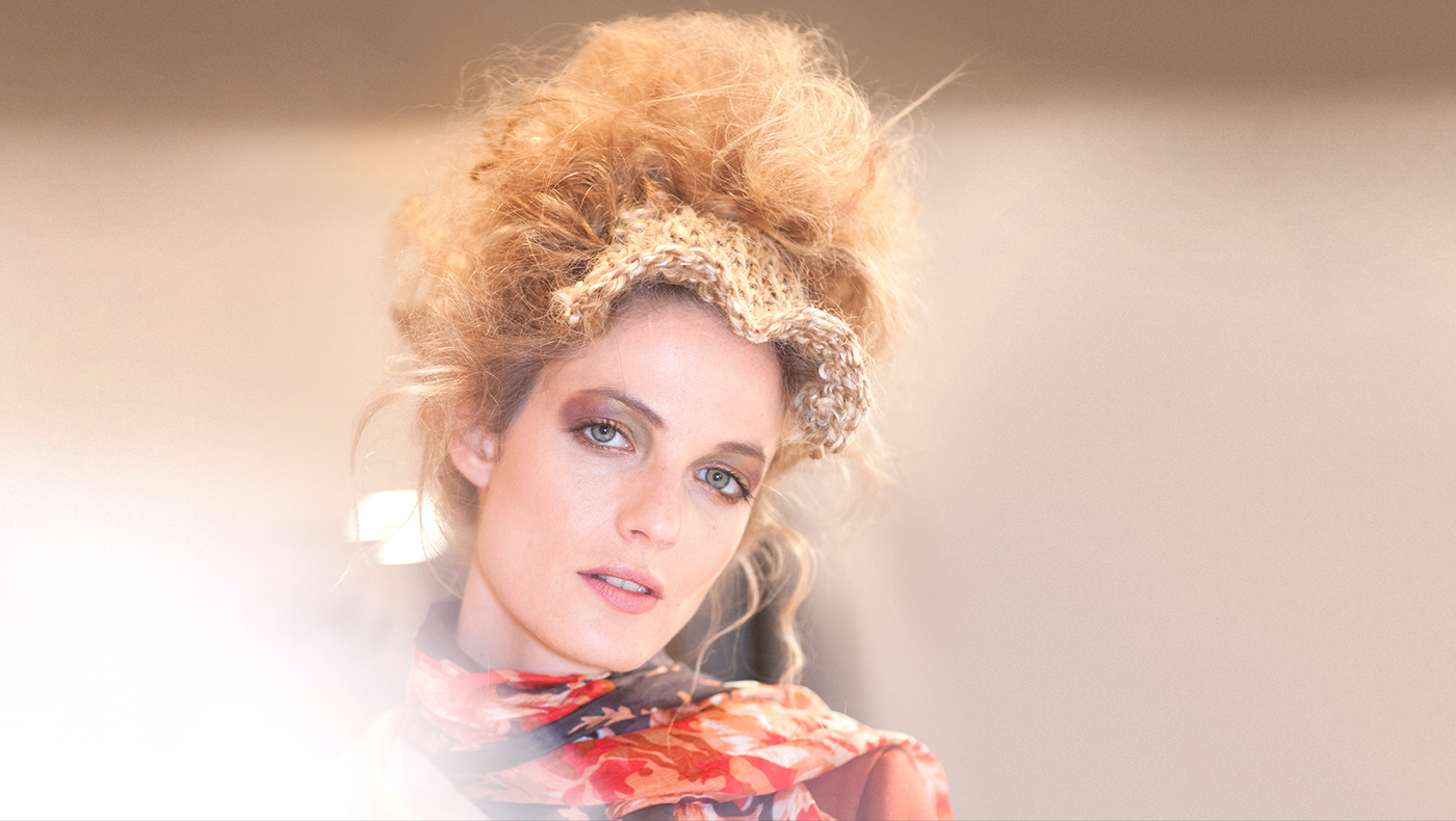 Mesmerizing beauty is combined with an unconventional braided visor complementing untamed textures on a cognac blonde with shadowed routes for depth.