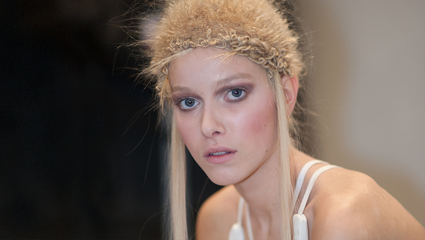 The rich blonde with faded length makes the perfect canvas for the puckering technique to transform long hair into a soft fury texture and minimalize the shape.