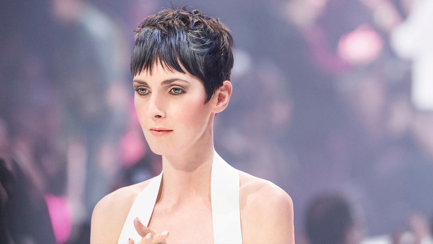 Balanced textured crop with a soft fringe and an enhanced crown. Colored in iridescent blue silver steel.