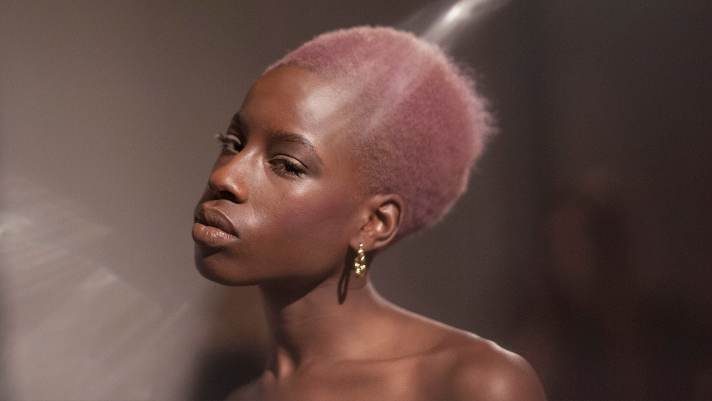 Created within an Afro texture, where a surprising powdered pink shape gives the illusion of a soft, candy cotton texture.