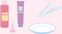 染めようとする薬剤のA剤とB剤を1対1の割合で、綿棒などで混合してテスト液を少量作ります。 (A剤、B剤共にすぐにキャップをして、しっかりと締めてください。)(パッチテストに必要な分量だけを小皿で混合してください。) *製品によっては混合の割合が異なりますのでご注意下さい。