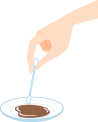 テスト液ができましたら、腕の内側に綿棒で10円硬貨大にうすく塗り、自然に乾燥させます。 (塗った部分が30分位しても乾かない場合は、ティッシュペーパー等でこすらないように軽く拭き取ってください。)