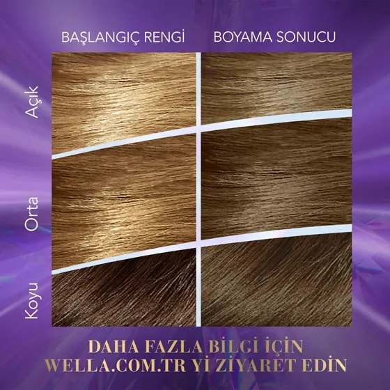 Tamamen emilmesini sağlamak için diplerden uçlara kadar saçın tamamına yayın. Boyayı en az 40 dakika saçta bırakın. 12/0, 12/1, 12/11 ve 12/81 tonları için: Saçın tamamına yaymak için köklere uygulayın. 30 dakika bekleyin.