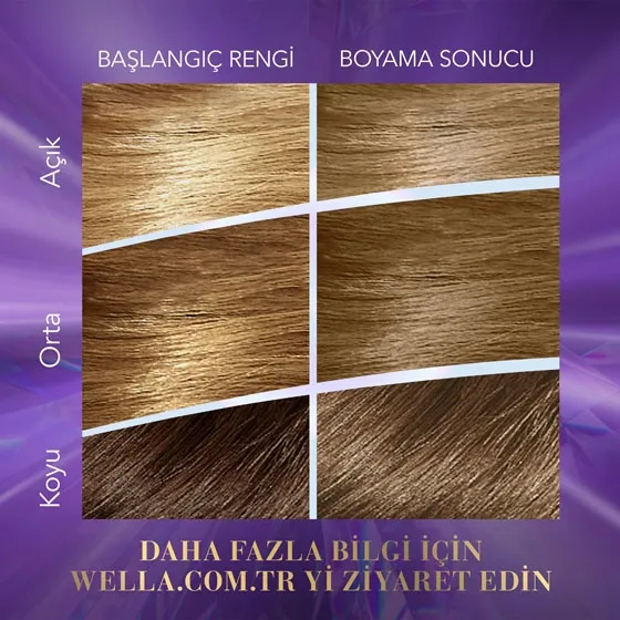 Tamamen emilmesini sağlamak için diplerden uçlara kadar saçın tamamına yayın. Boyayı en az 40 dakika saçta bırakın. 12/0, 12/1, 12/11 ve 12/81 tonları için: Saçın tamamına yaymak için köklere uygulayın. 30 dakika bekleyin.